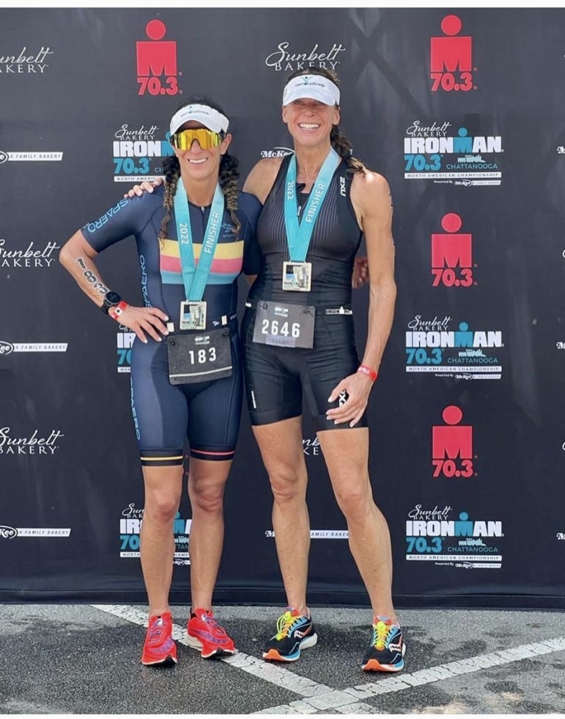 Coach Sarah has not only taught me to swim 1.2 miles efficiently, to bike 58 miles (Ironman 70.3 North Carolina) with proper nutrition, and to run 13.1 miles without stopping. She has taught me persistence, and to be kind to myself, and that my journey is MY journey and that showing up is what gets us across the finish line. She has also shown me and countless others what friendship and coaching with compassion means. I’ve been inspired to be a better athlete and mother while she guides me through this journey.